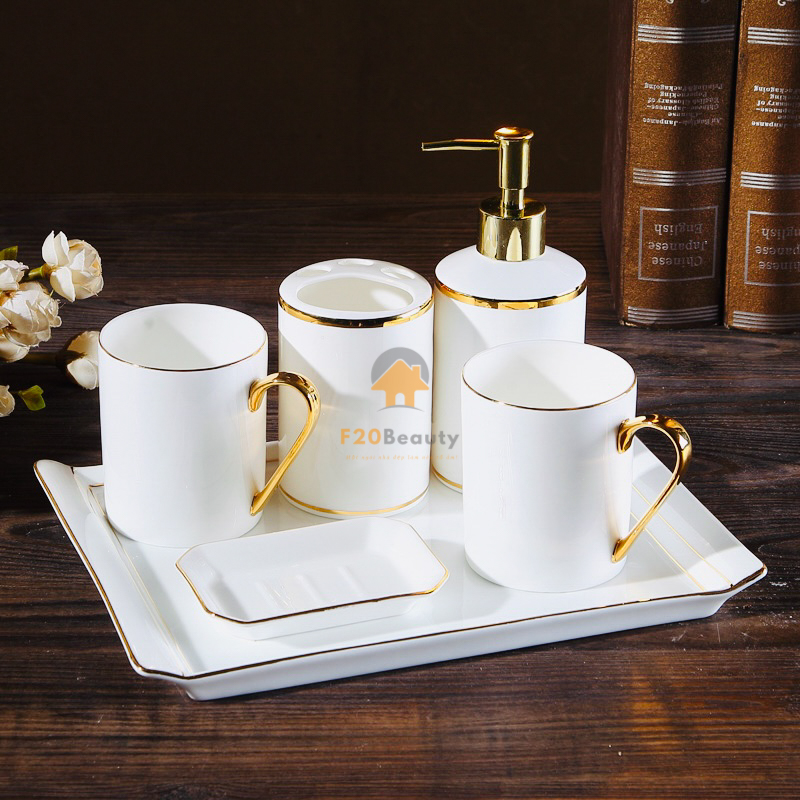 Bộ đồ dùng nhà tắm bằng sứ trắng