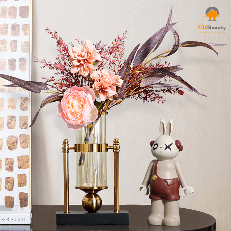 Bình thủy tinh Yeon Seo kết hợp hoa phong cách Scandinavian trang trí bàn phòng khách