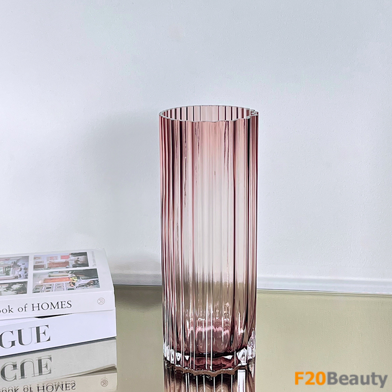 Bình thủy tinh trụ tròn vân sọc màu hồng mang vẻ đẹp hiện đại, phá cách là sự kết hợp sang trọng và tinh tế. Bình làm từ thủy tinh cao cấp giúp bình trở nên trang nhã, quý phái khó bị phai mòn theo năm tháng.