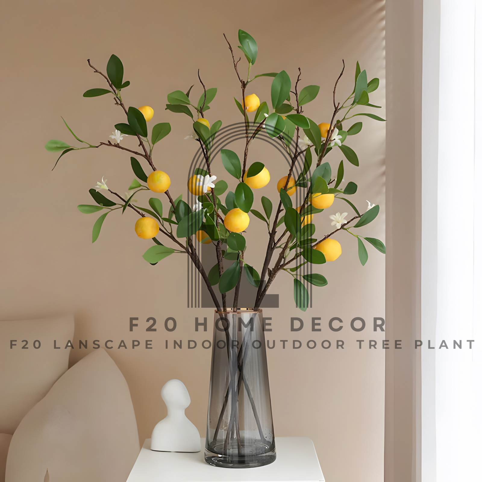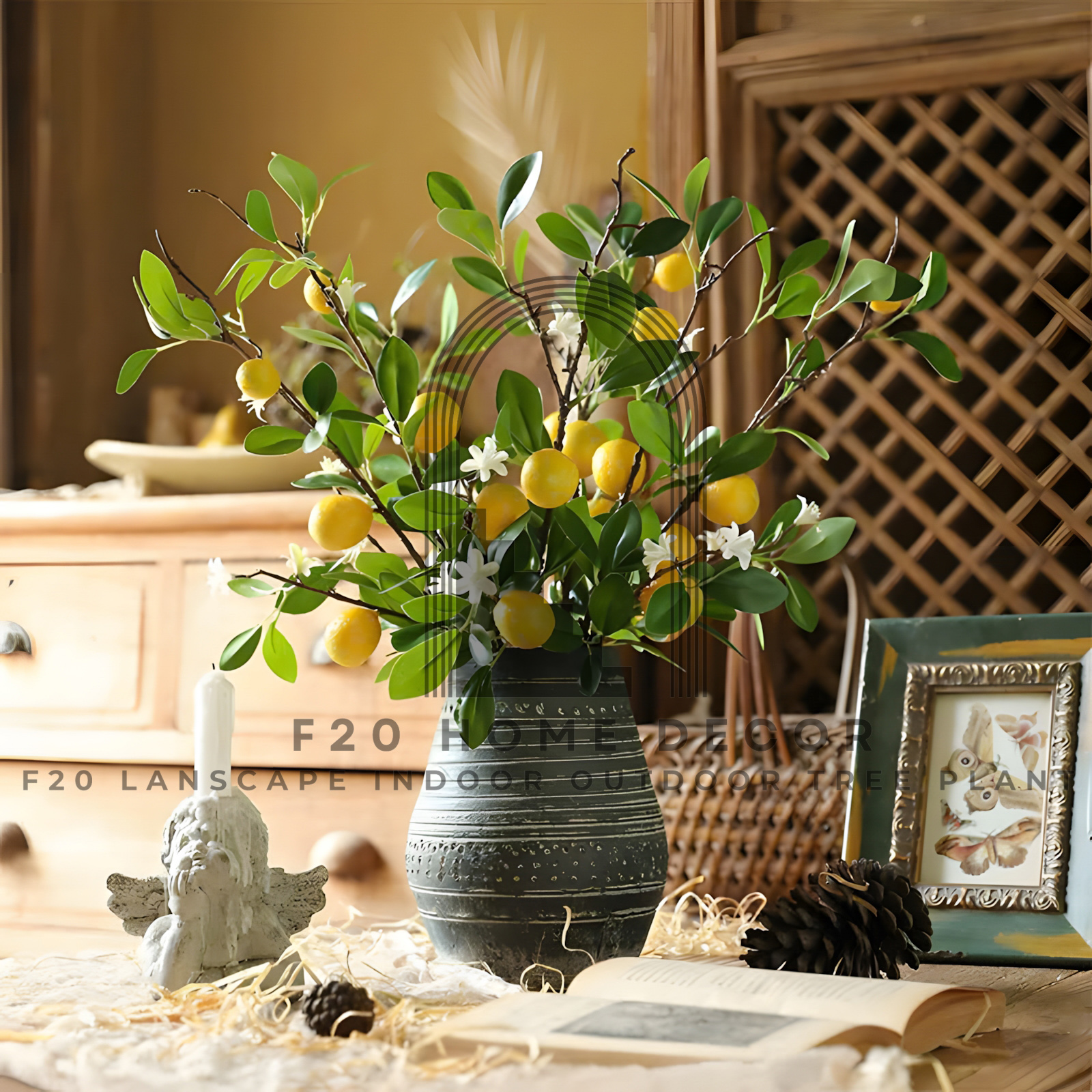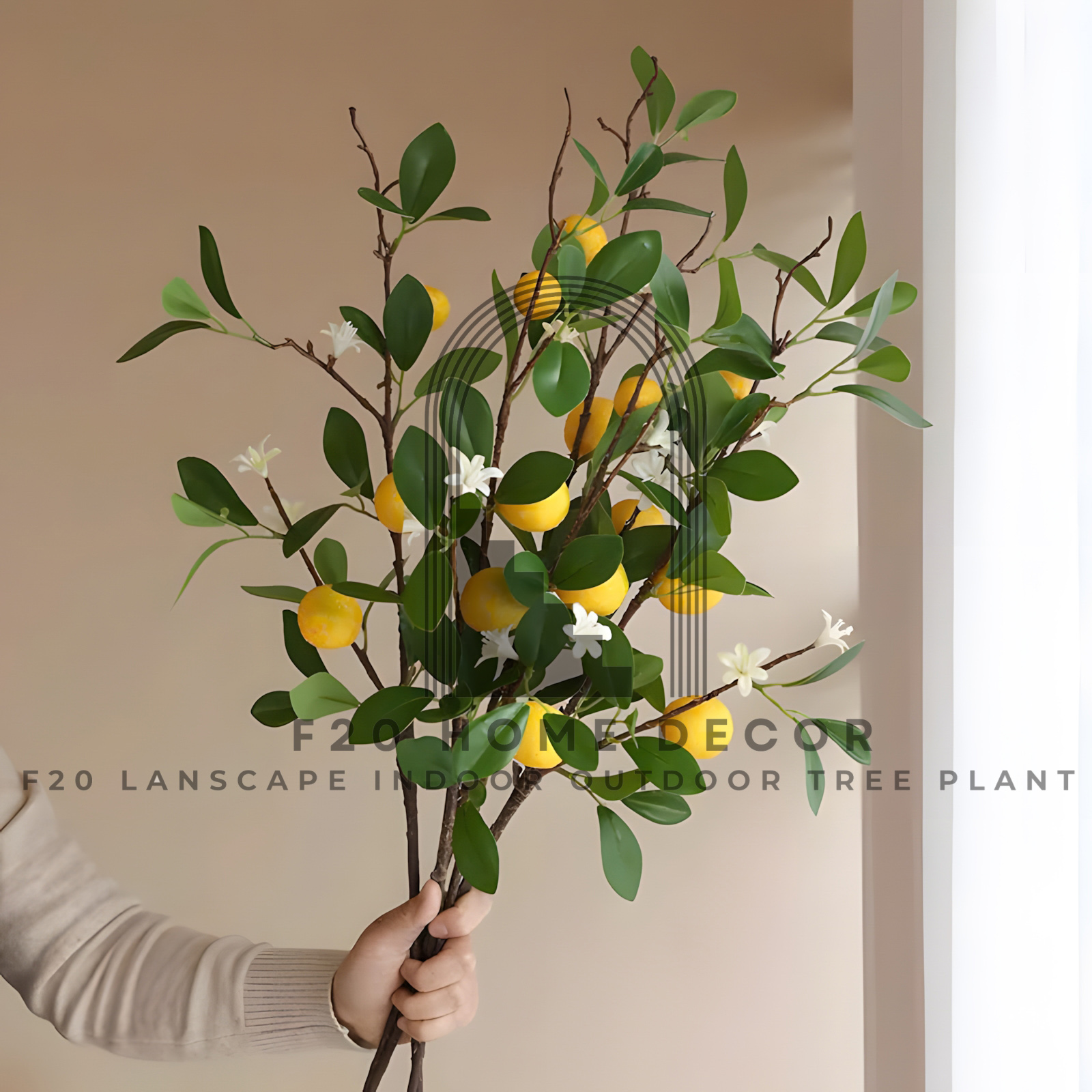 Cành cây chanh vàng có hoa giả tạo thiên nhiên trong nhà mang không gian trở nên tinh tế, sang trọng