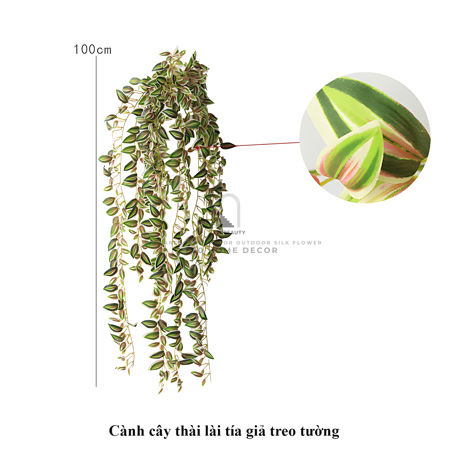 Chi tiết kích thước cành cây thài lài tía giả cao 100cm
