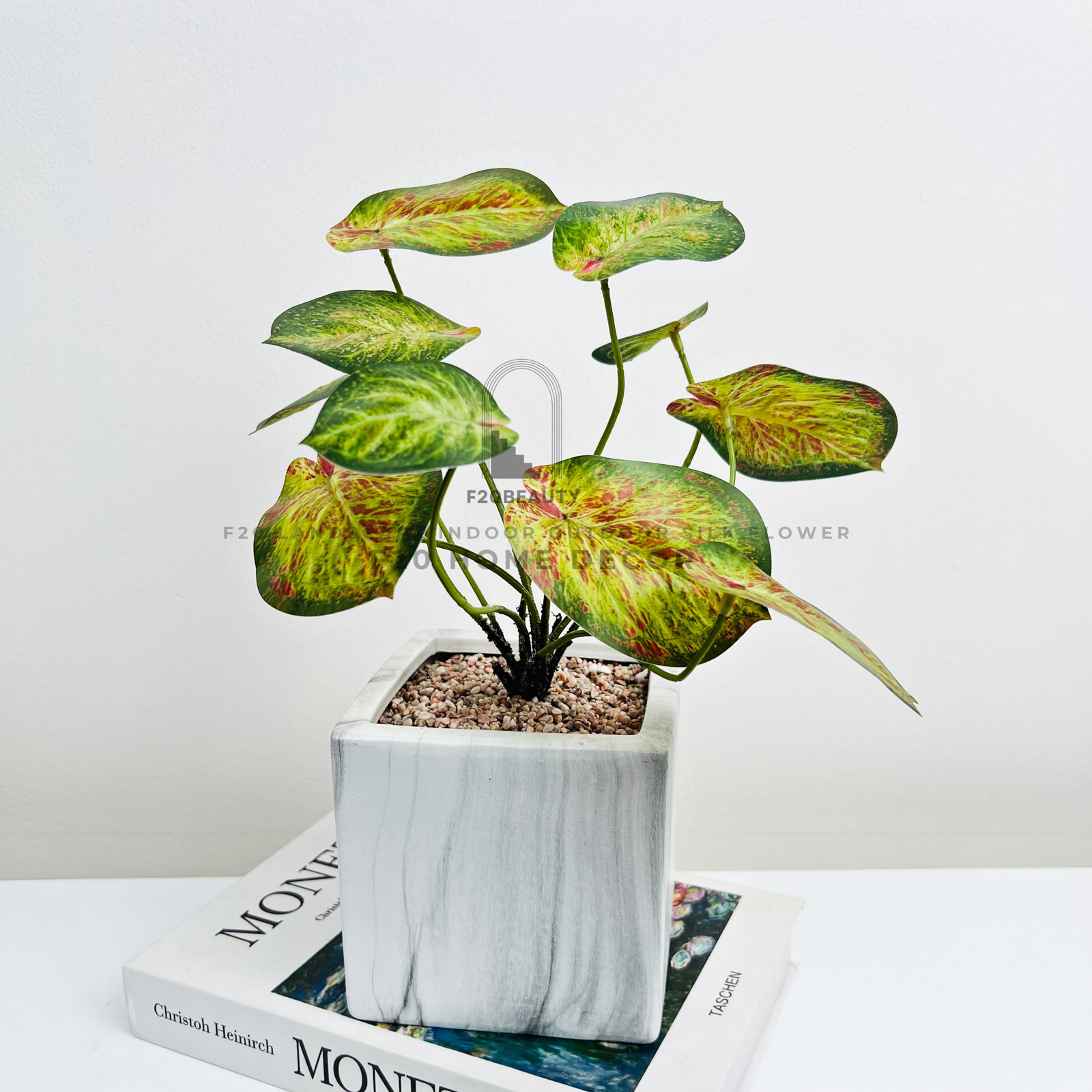 Chậu cây Thiên Thần giả để bàn kèm chậu vuông trắng tạo không gian thư giãn cho phòng khách