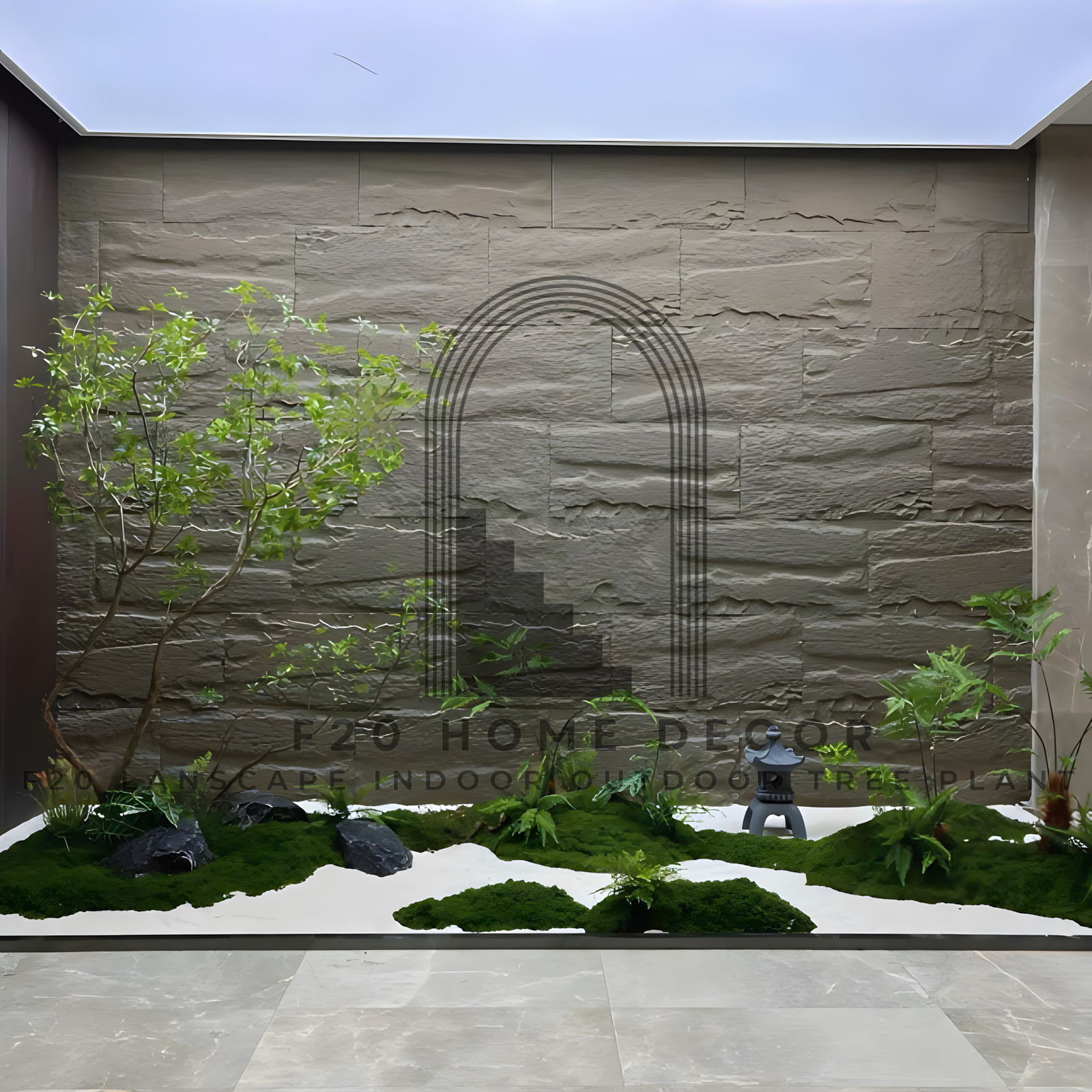 Tiểu cảnh cây giả là lựa chọn hoàn hảo để trang trí giếng trời, mang đến một góc xanh an yên, tinh tế và gần gũi với thiên nhiên. Được chế tác từ chất liệu nhựa cao cấp, những cây giả này tái hiện chân thực vẻ đẹp của cây thật, từ hình dáng tán lá đến màu sắc, đường vân trên thân cây. Cây Asabi mang đến vẻ đẹp khỏe khoắn, xanh tươi với tán lá xum xuê, trong khi dương xỉ lại mềm mại, uyển chuyển với những chiếc lá nhỏ xinh. Sự kết hợp hài hòa này không chỉ tạo điểm nhấn thẩm mỹ cho giếng trời mà còn mang lại cảm giác thư thái, bình yên cho không gian sống. Đặc biệt, với ưu điểm không cần chăm sóc, tưới nước hay bón phân, cây Asabi và dương xỉ giả là giải pháp trang trí giếng trời tiện lợi và tiết kiệm, giúp bạn dễ dàng tạo nên một góc xanh lý tưởng ngay tại nhà.