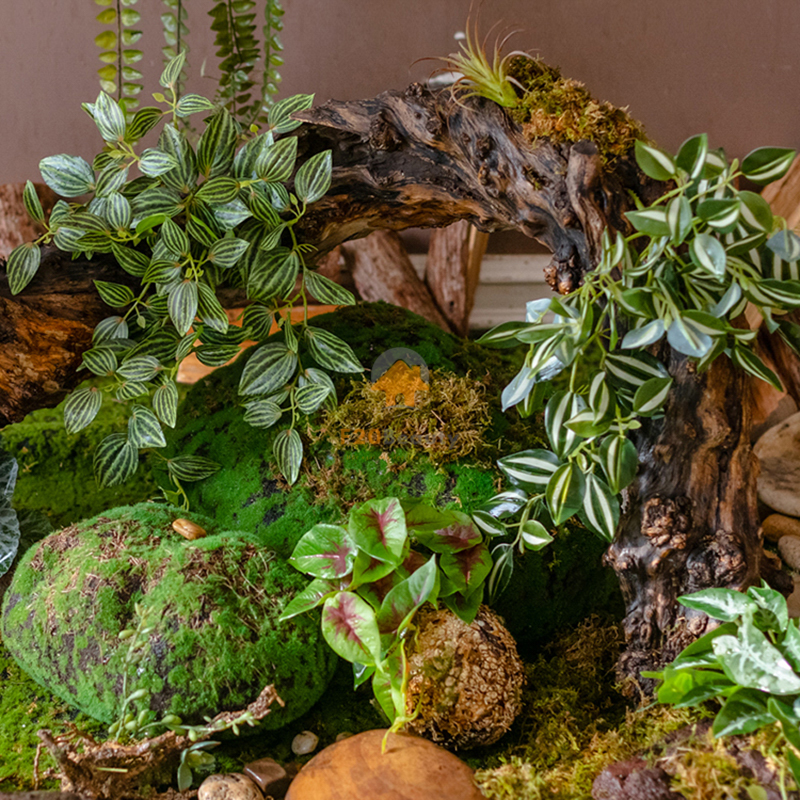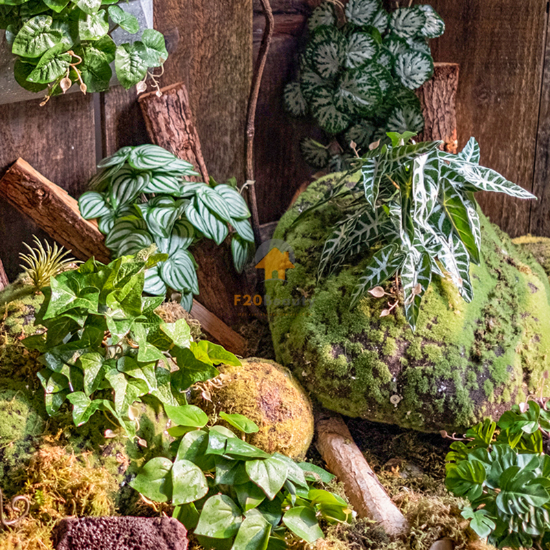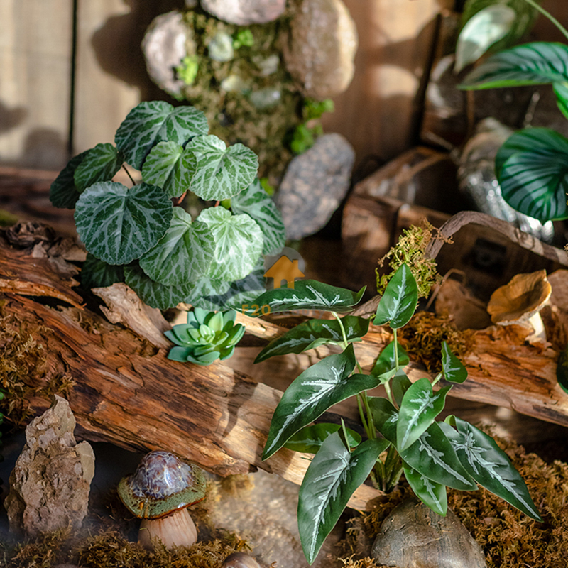 Cây Monstera Nam Mỹ giả trang trí thảm rêu và tiểu cảnh thu hút mọi ánh nhìn với chiếc lá tròn đẹp