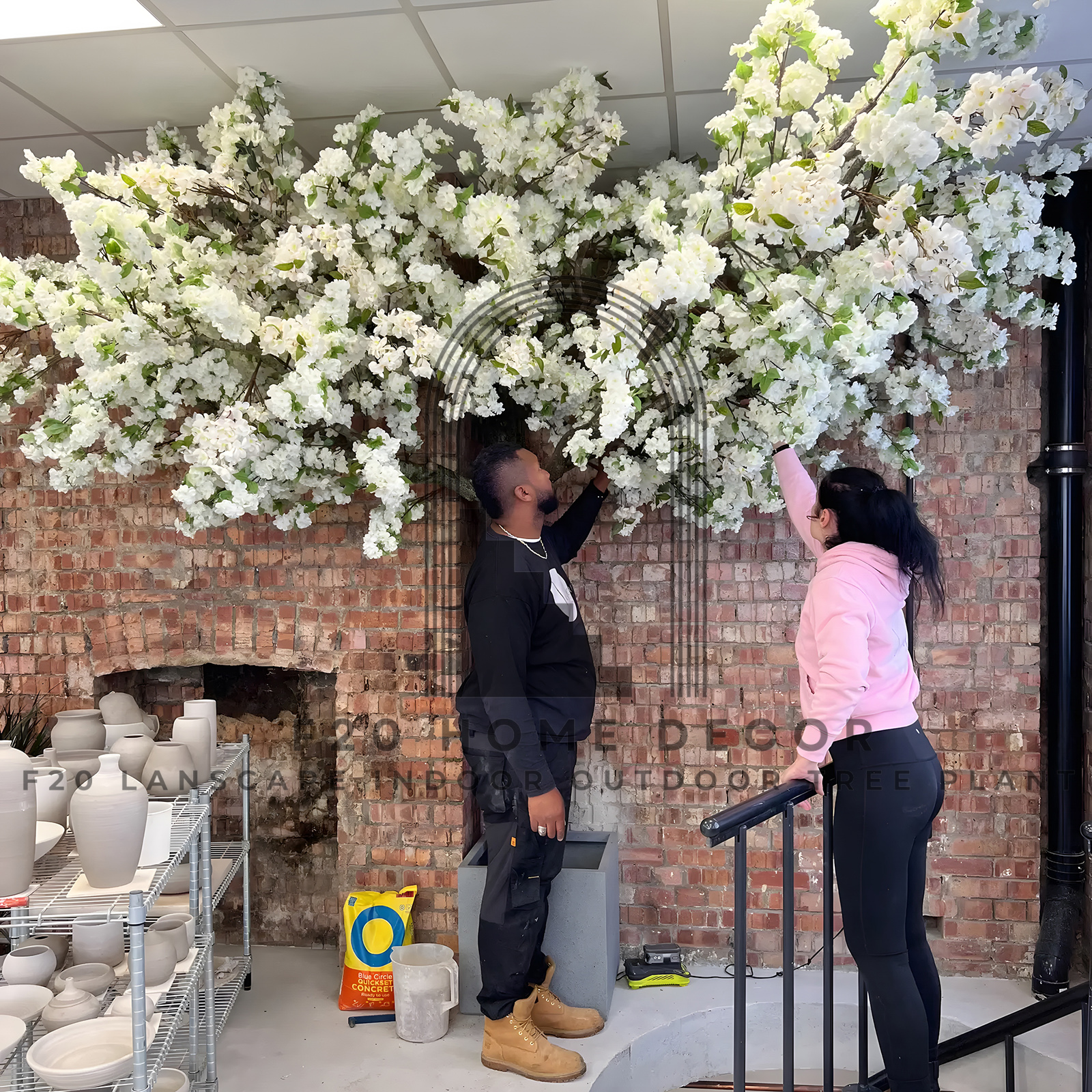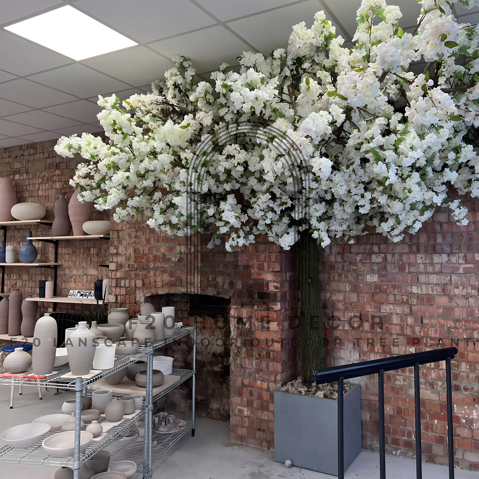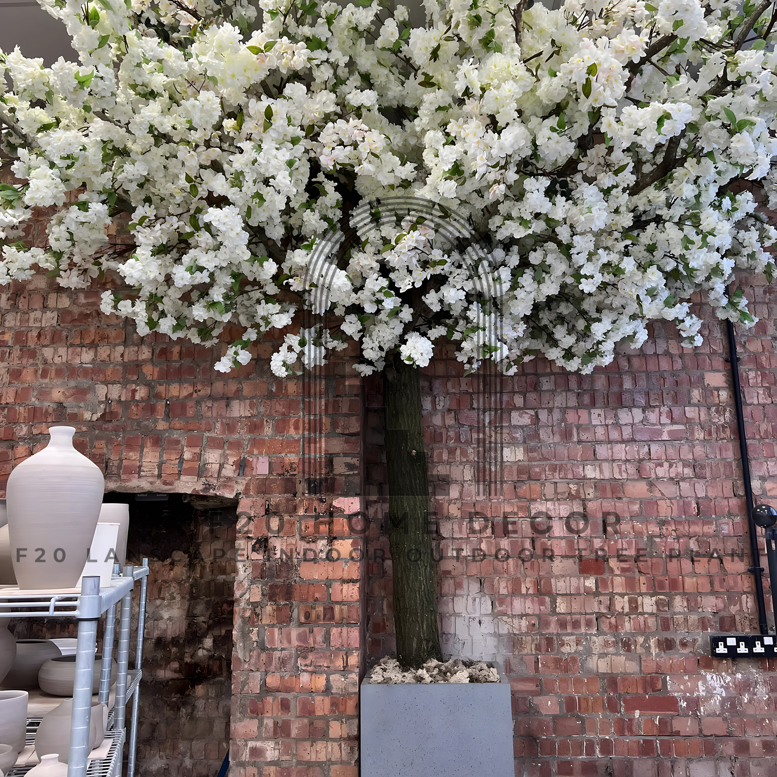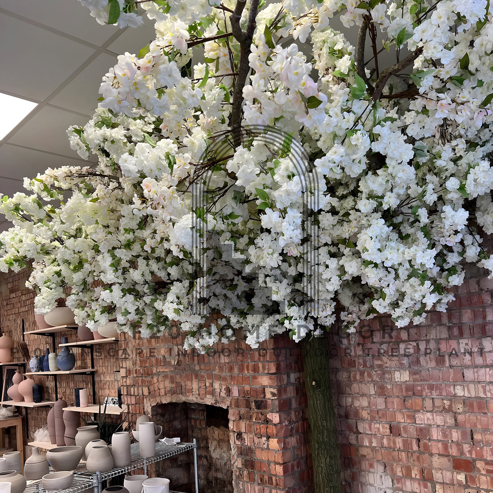 Vẻ đẹp trắng tinh khôi cây hoa anh đào trắng giả trang trí cửa hàng