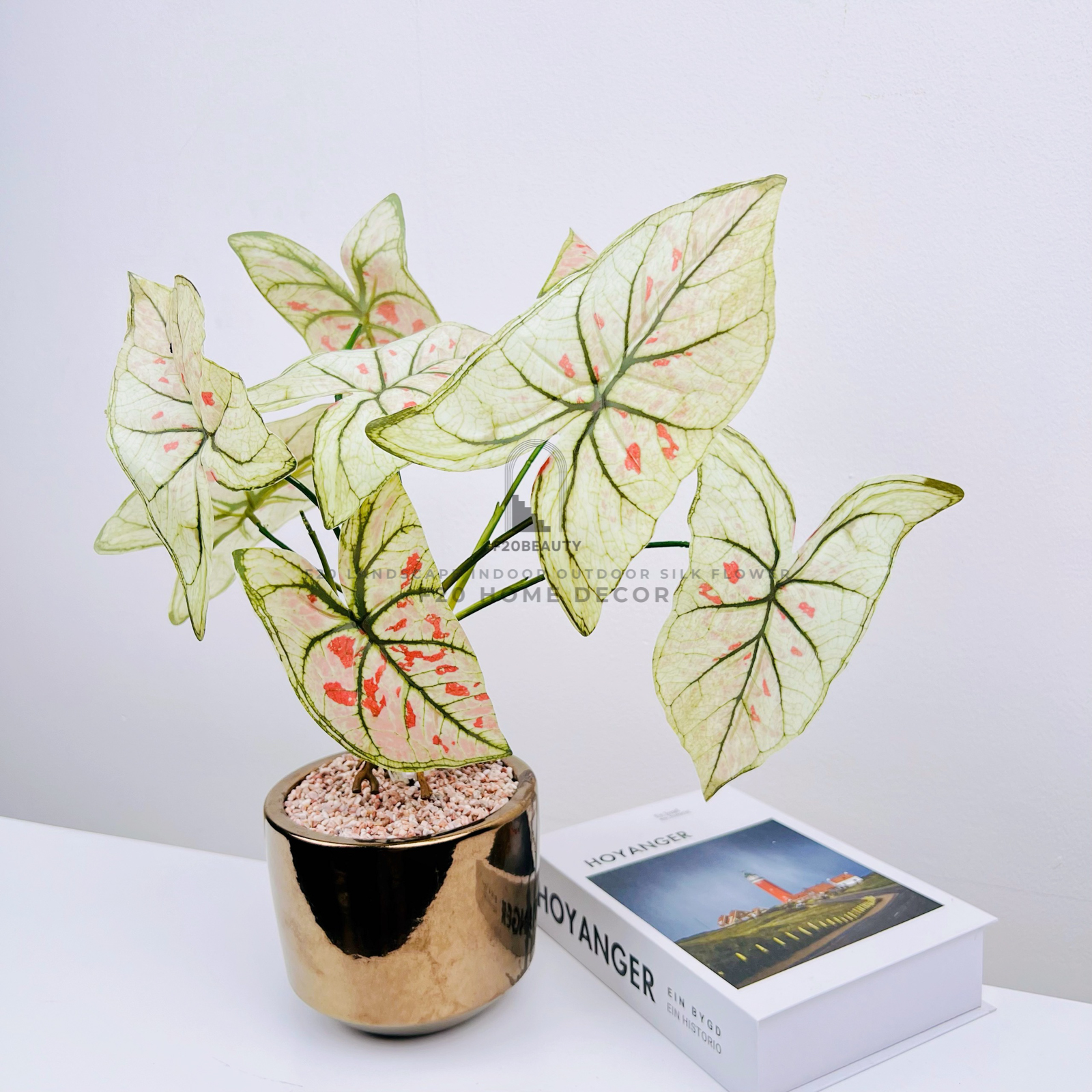 Chậu cây môn trắng hồng giả để bàn trang trí bàn làm việc