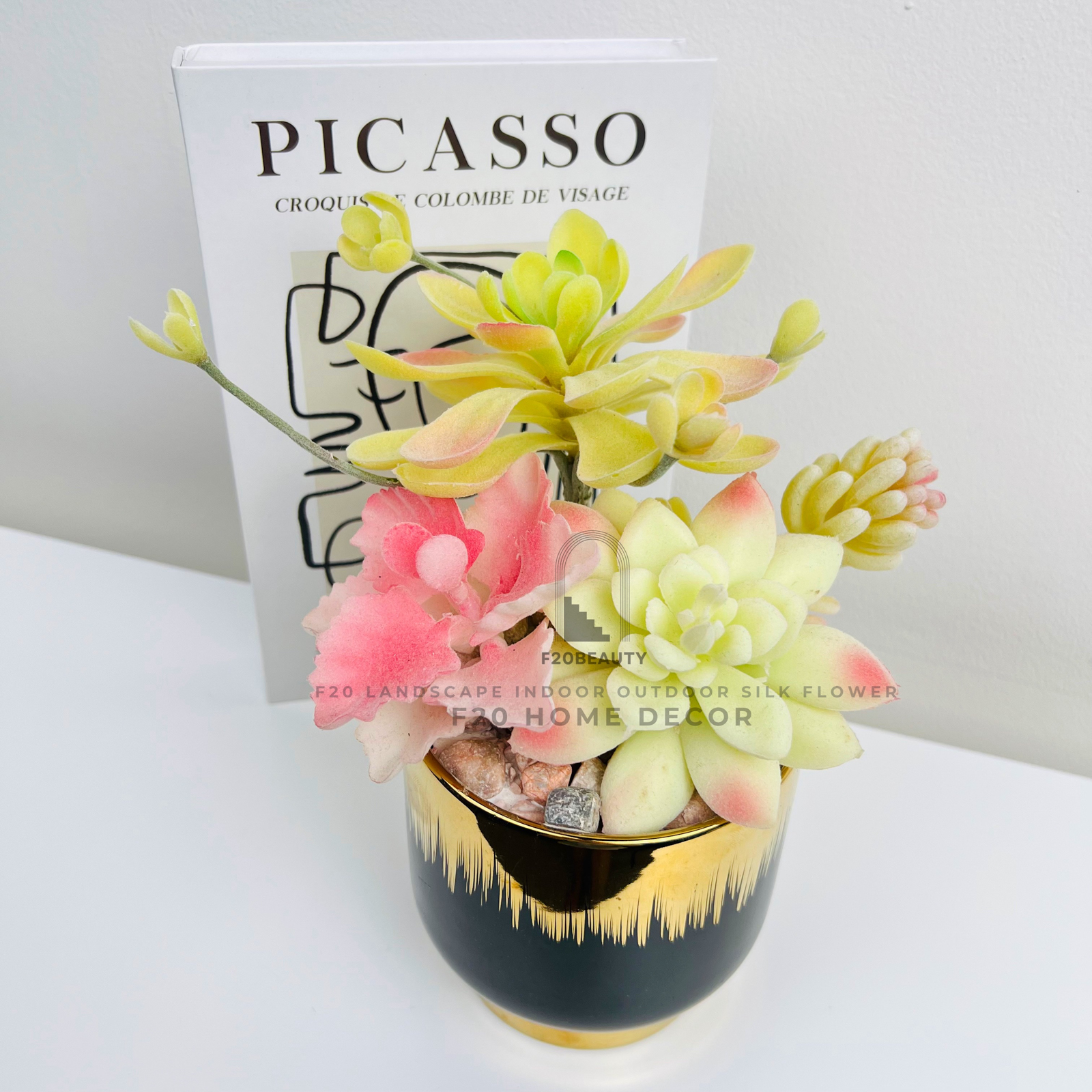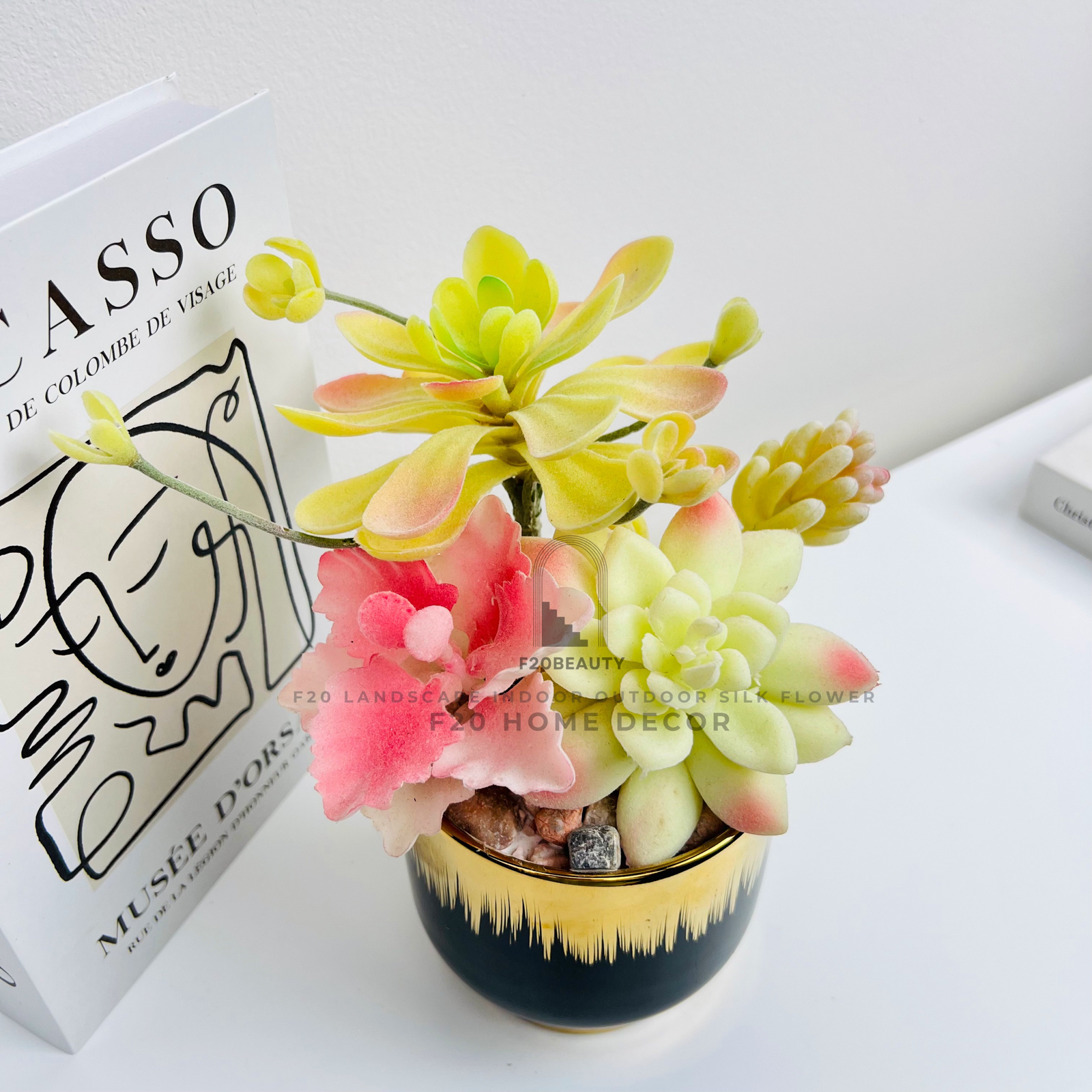 Chậu cây sen đá cánh bướm giả để bàn trang trí văn phòng