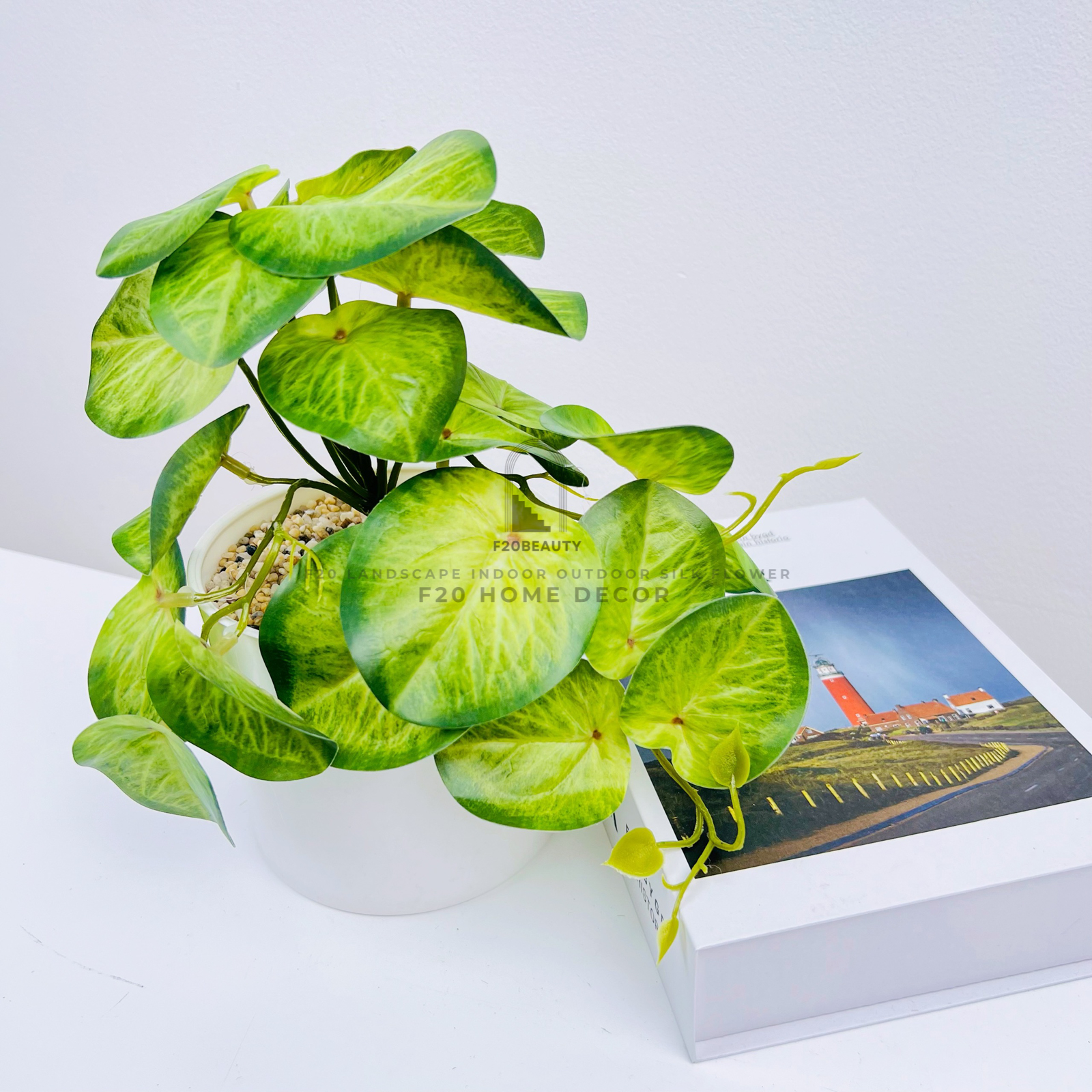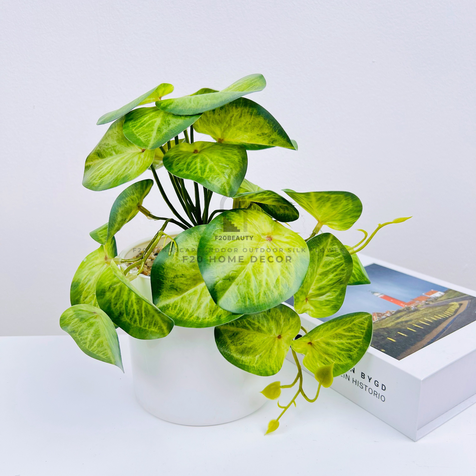 Chậu cây trầu bà Aureum giả để bàn trang trí bàn làm việc