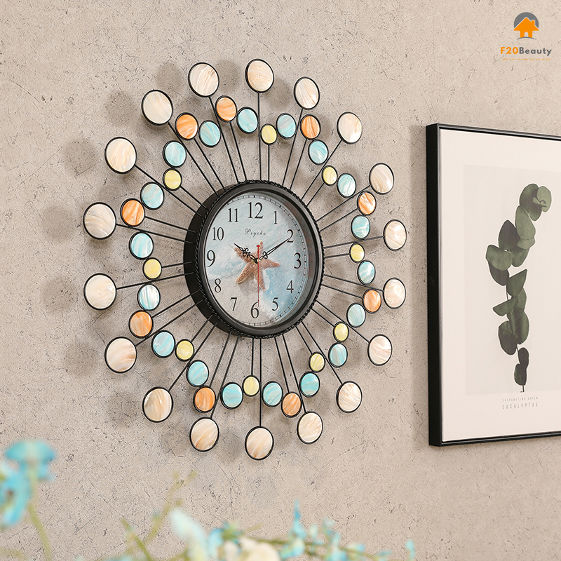 Chiếc dồng hồ treo tường bằng sắt nhẹ nhàng và sang trọng này mang đến một nét mới cho ngôi nhà, khác hẳn với những chiếc đồng hồ treo tường thông thường khác trên thị trường, thiết kế vô cùng sáng tạo của nó khiến mọi người phải tỏa sáng. Vẻ ngoài uy nghiêm được trang trí bằng những lớp vỏ tự nhiên đầy màu sắc, vẻ ngoài mang đầy yếu tố trang nhã, thể hiện trọn vẹn cảm quan nghệ thuật tao nhã và lãng mạn, mang đến trải nghiệm môi trường gia đình tự nhiên, thoải mái và chất lượng cao.