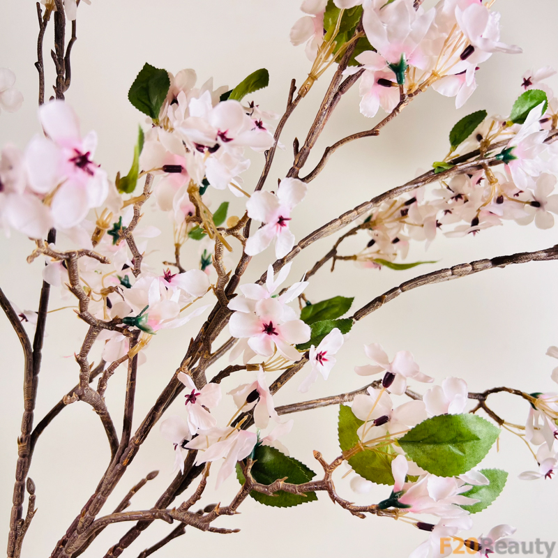 Những bông hoa này được tạo ra từ chất liệu vải lụa cao cấp, chăm chút đến từng chi tiết nhỏ, từ cánh hoa mỏng manh đến cành hoa mềm mại. Điều này tạo nên một vẻ đẹp tự nhiên và tinh tế, giúp hoa anh đào mận hồng trắng trở thành một tác phẩm nghệ thuật thực sự.