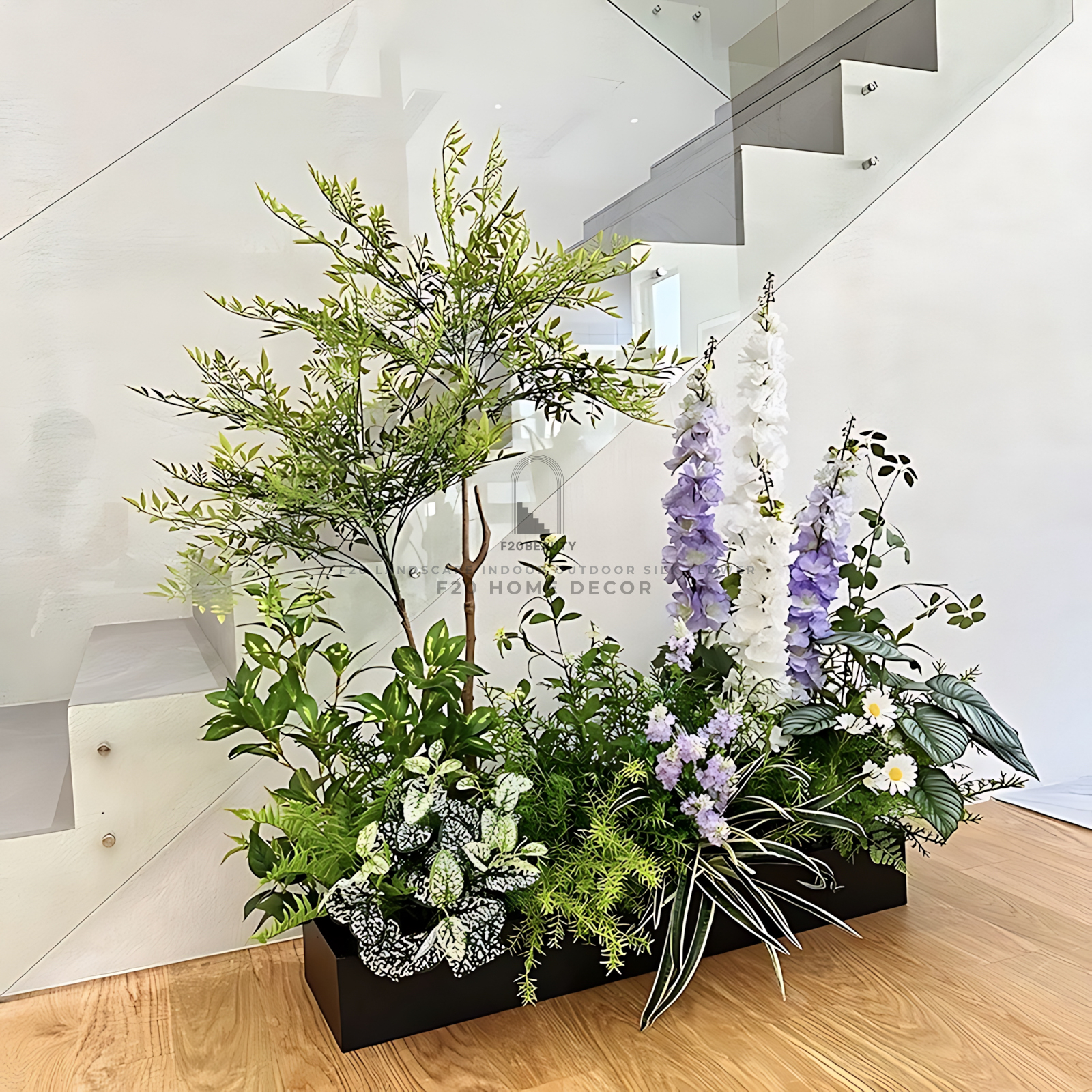 Hộp cây giả trang trí cầu thang văn phòng sang trọng và sáng tạo