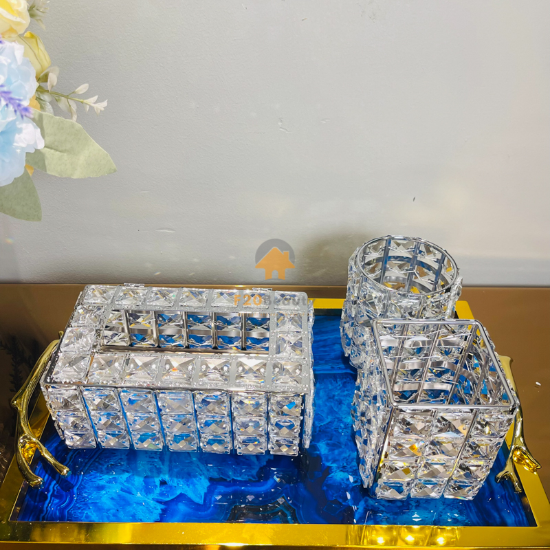Hộp đựng khăn giấy, đồ trang điểm đính đá bạc phù hợp với những người yêu thích sự sang trọng, tinh tế trong trang trí nội thất. Sản phẩm cũng là một lựa chọn tuyệt vời để tặng cho bạn bè và người thân trong các dịp đặc biệt.