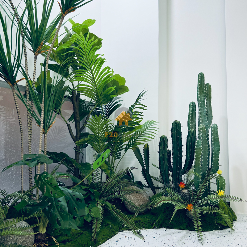 Tiểu cảnh cây giả decor trung tâm thương mại văn phòng đẹp như thật