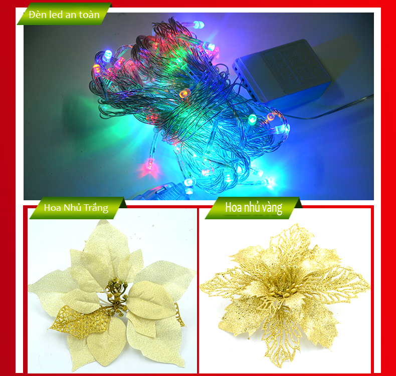 Bộ đèn led giáng sinh kèm theo hoa nhủ vàng nhủ trắng
