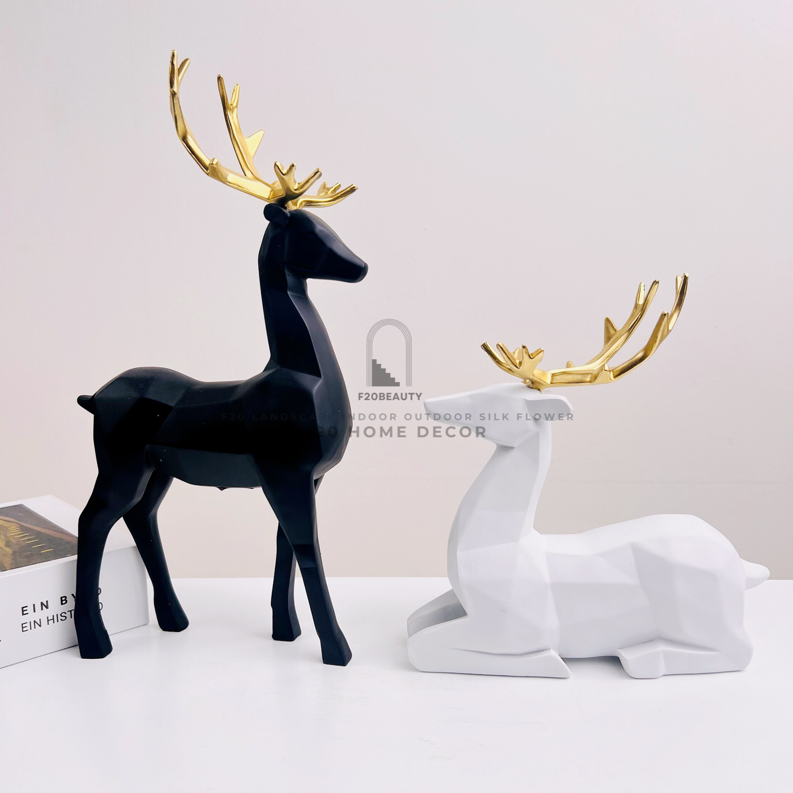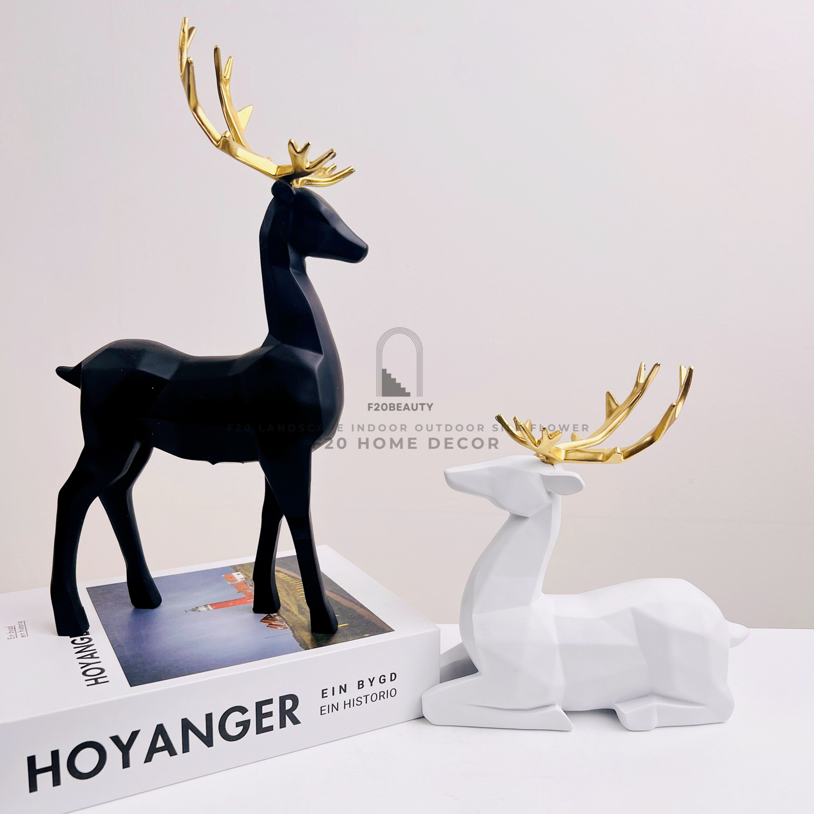 Tượng cặp hươu trắng đen điểm nhấn nghệ thuật cho không gian sống