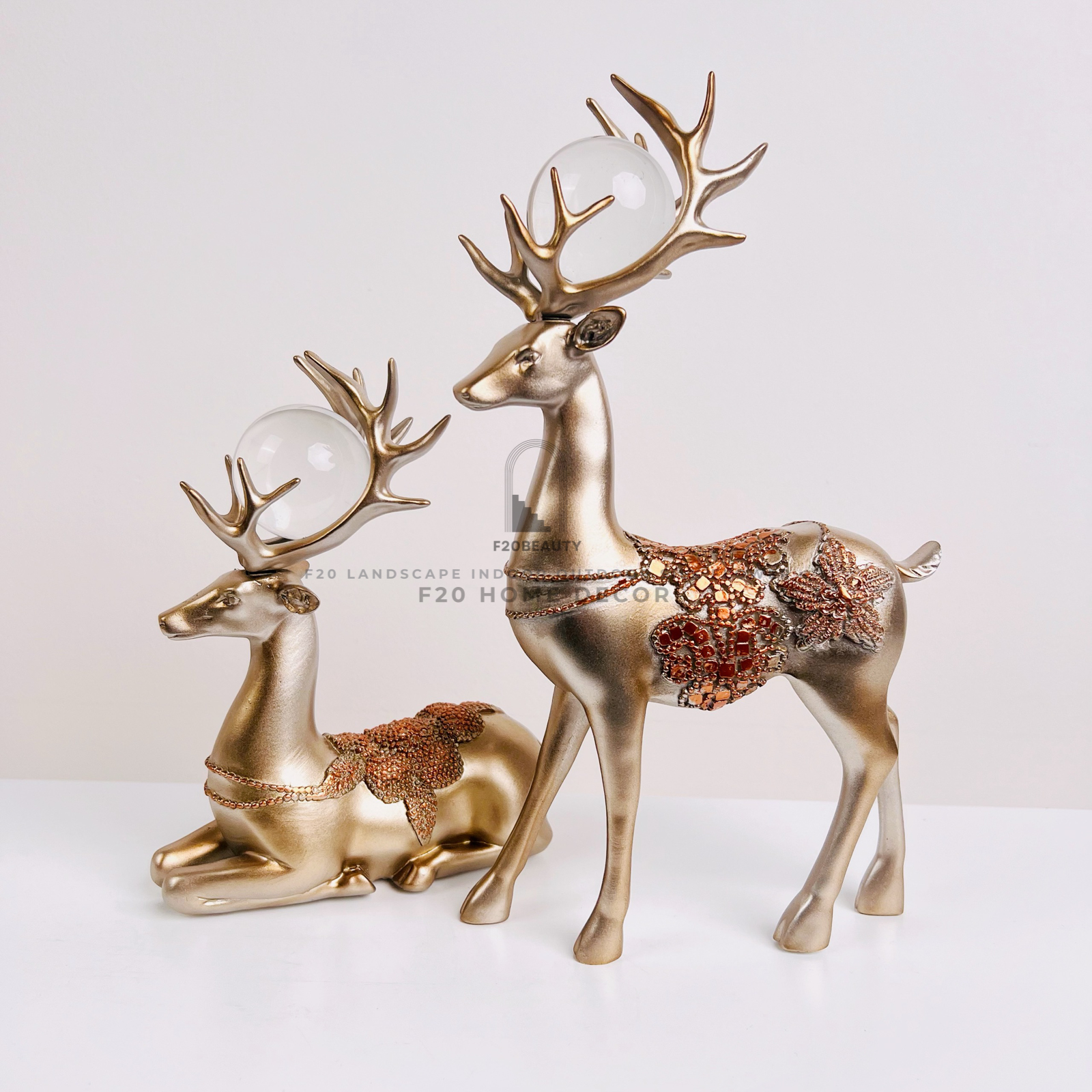 Tượng cặp hươu vàng đính châu