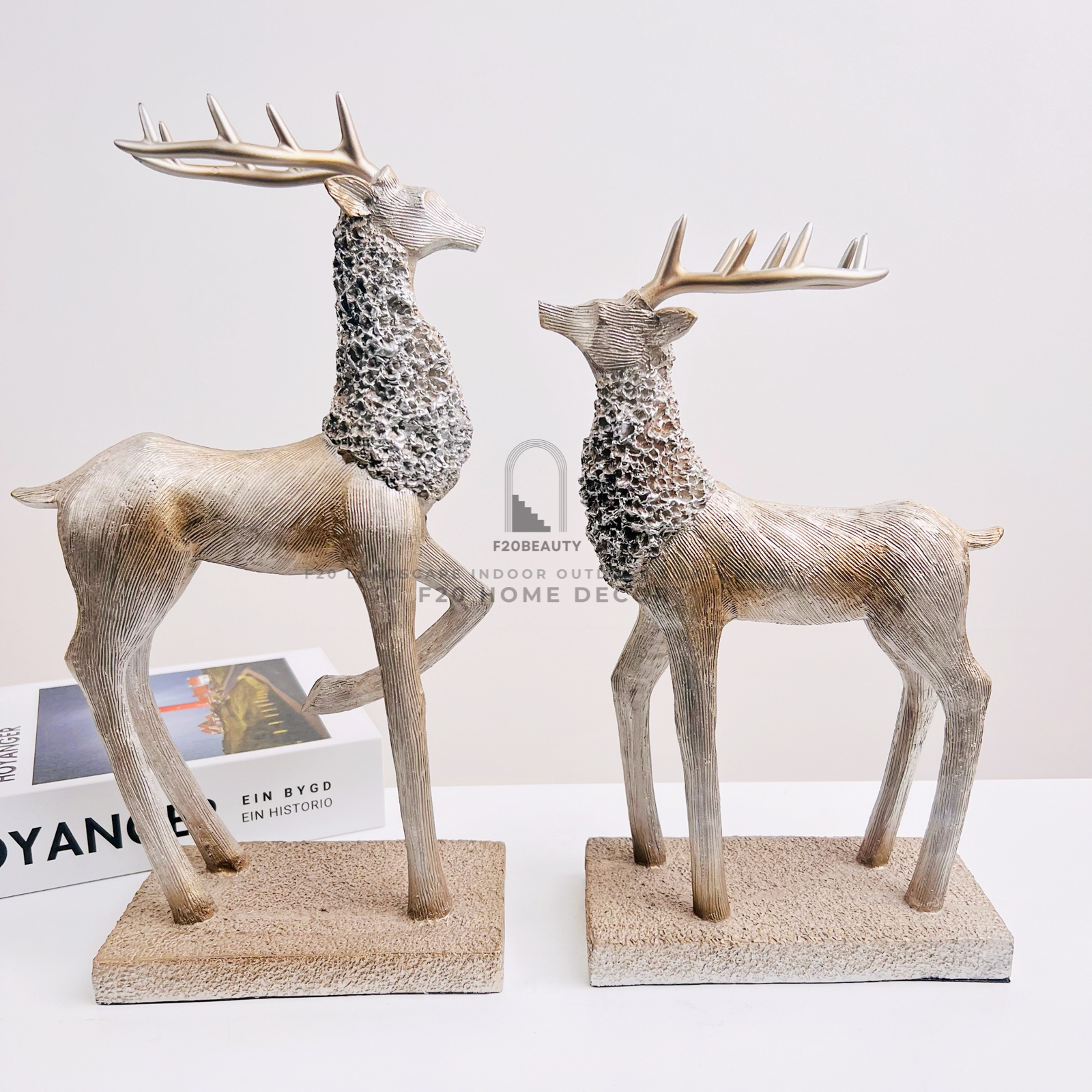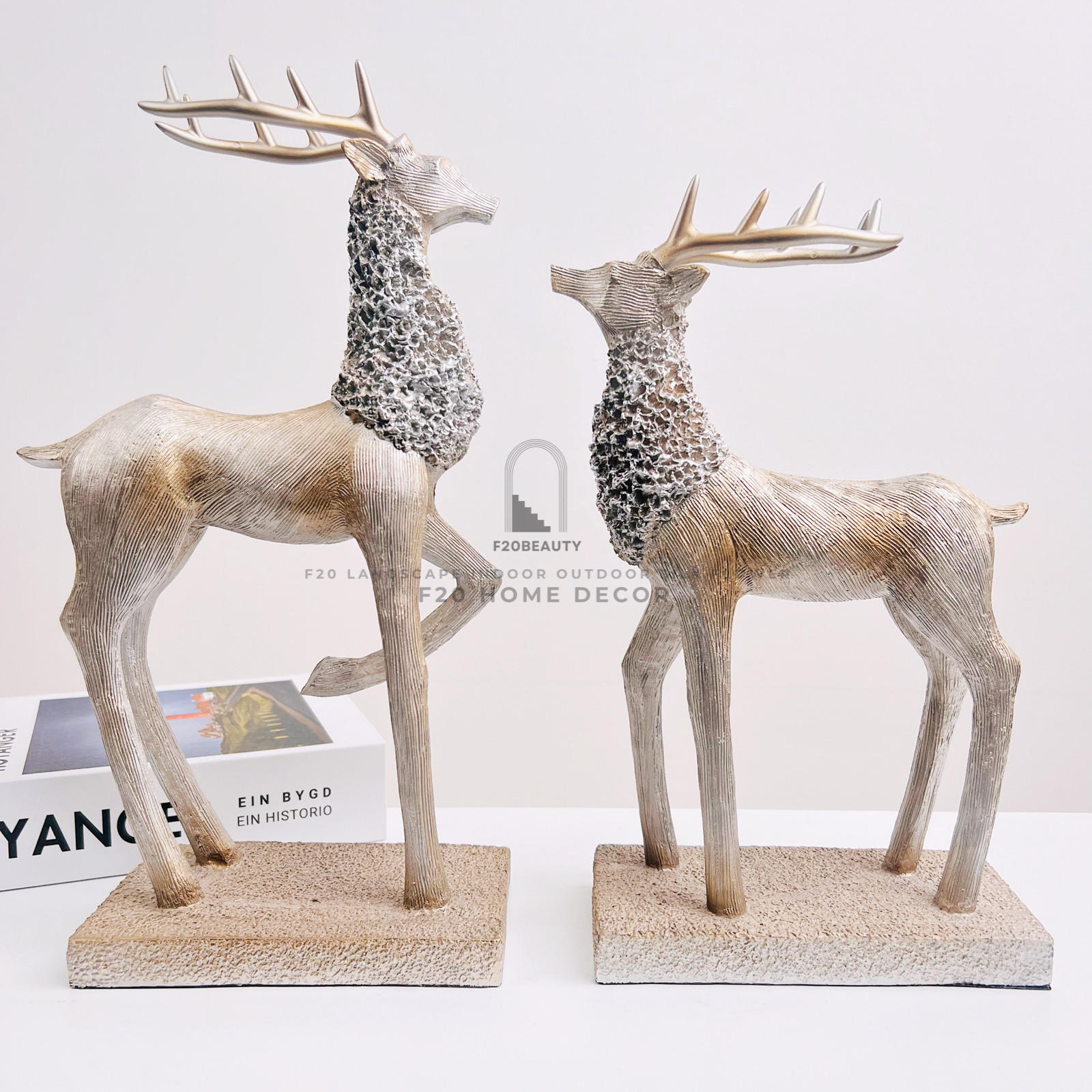 Tượng cặp hươu phong thủy Artemis Bắc Âu màu Bạc trang trí bàn Console