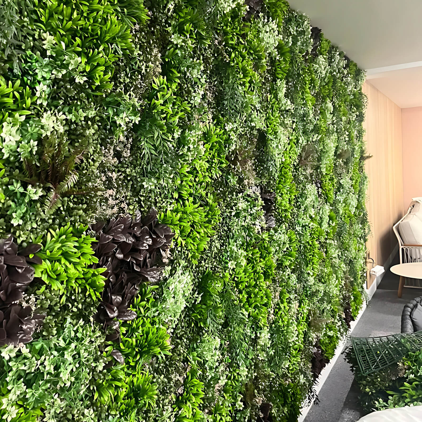 Tường cây giả mix lá nhiều loại hiện đại phù hợp với phong cách thiết kế hiện đại