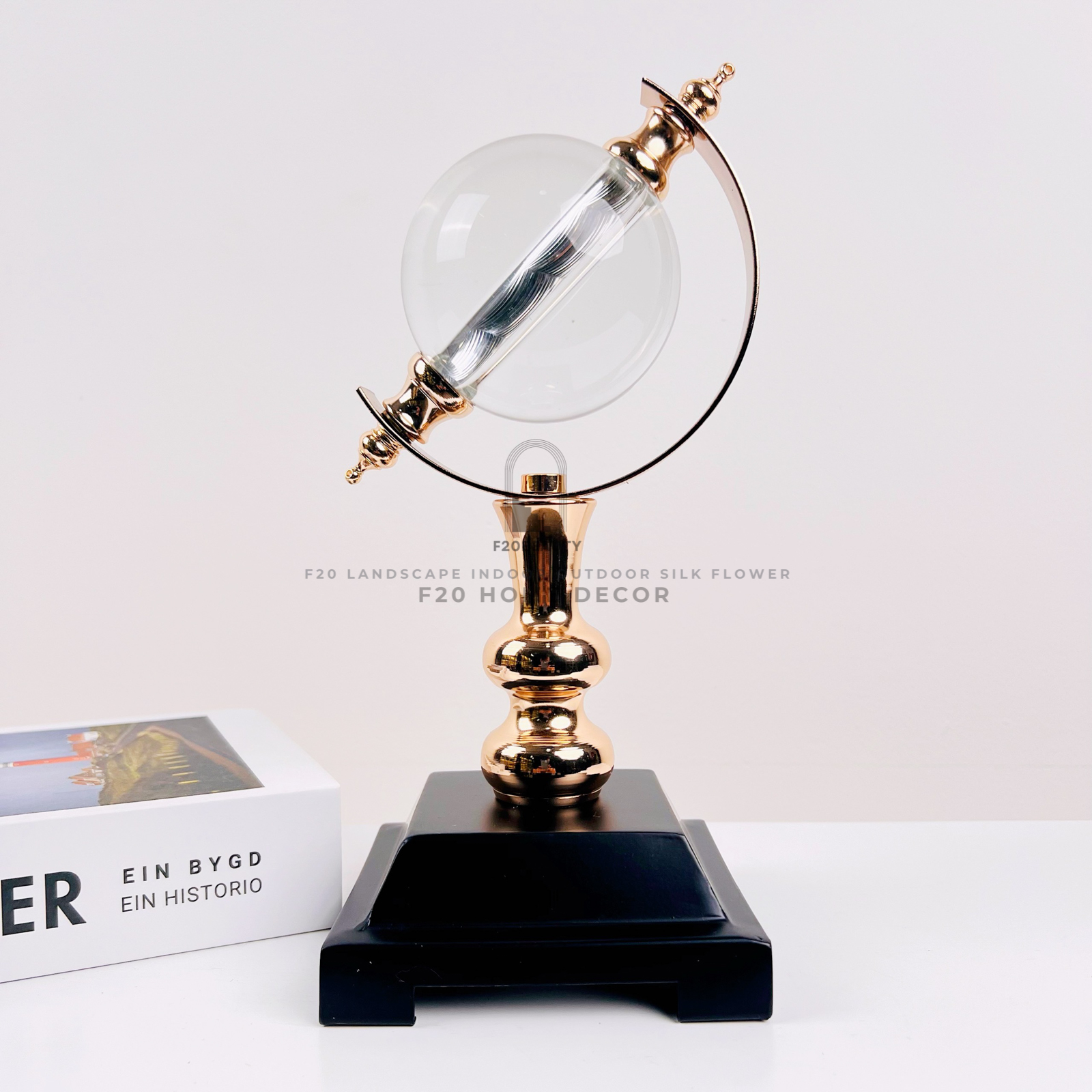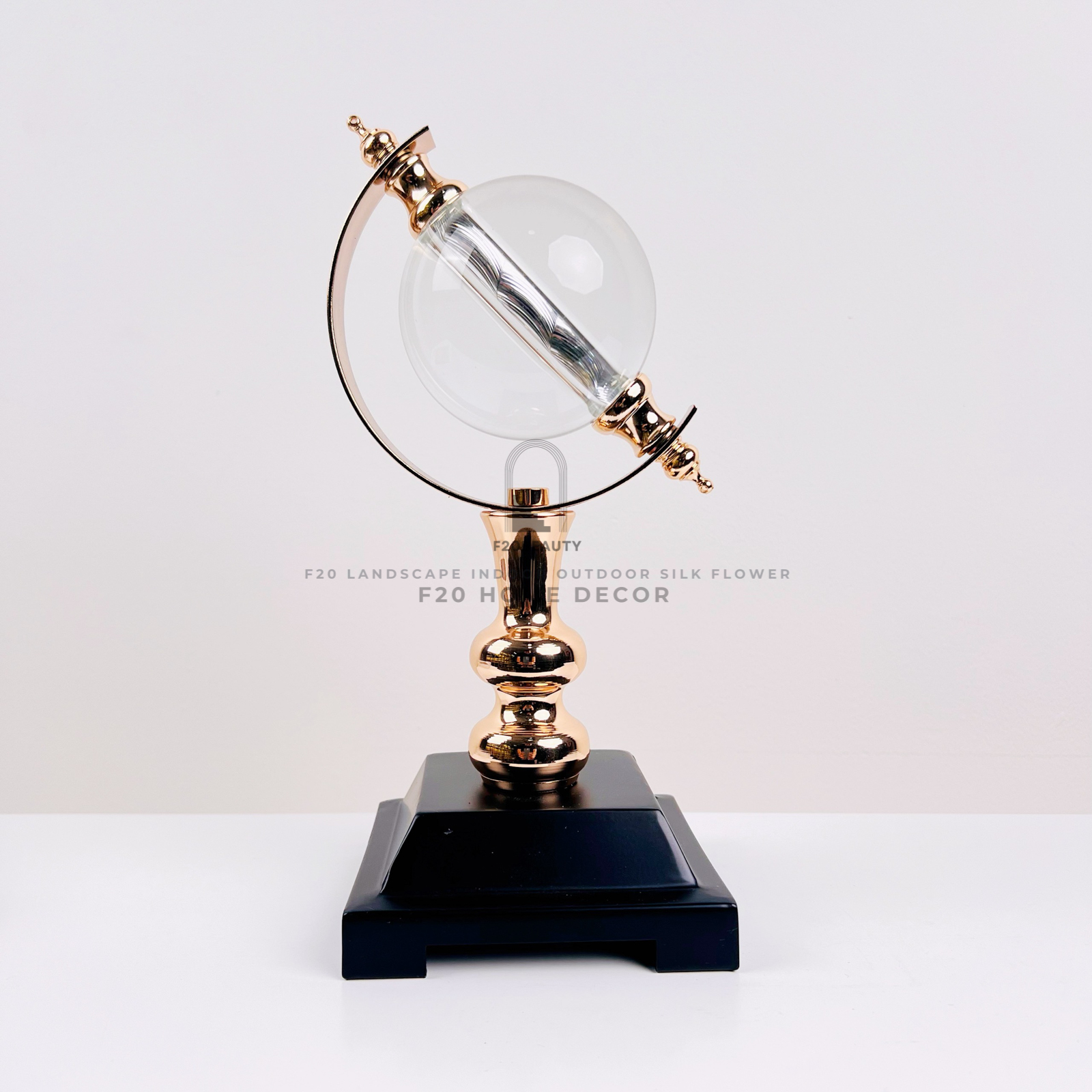 Tượng quả cầu pha lê để bàn là một sản phẩm trang trí hoàn hảo cho nội thất của gia đình hoặc văn phòng. Sản phẩm được làm từ chất liệu kim loại và đá cẩm thạch, kết hợp hai màu vàng trắng tạo nên một cảnh quan sang trọng và quý phái. Đế sản phẩm được làm bằng cẩm thạch màu trắng tạo nên một phong cách rất tinh tế và sáng tạo.